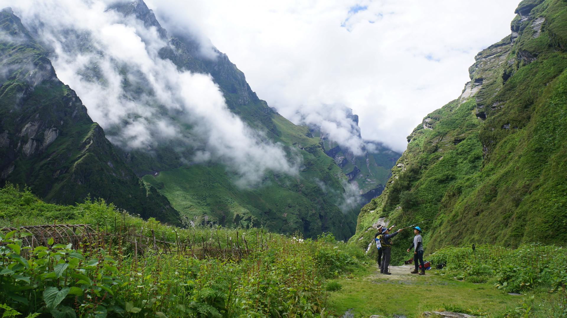 간드룽과 난드룽의 V협곡 따라 빙하물이 흐르는 모디콜리강을 따라 이동