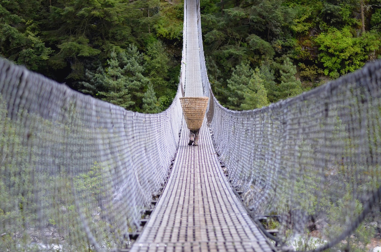출렁다리를 건너 지누단다 경유 촘룽까지 가파른 오르막 트래킹(2시간)