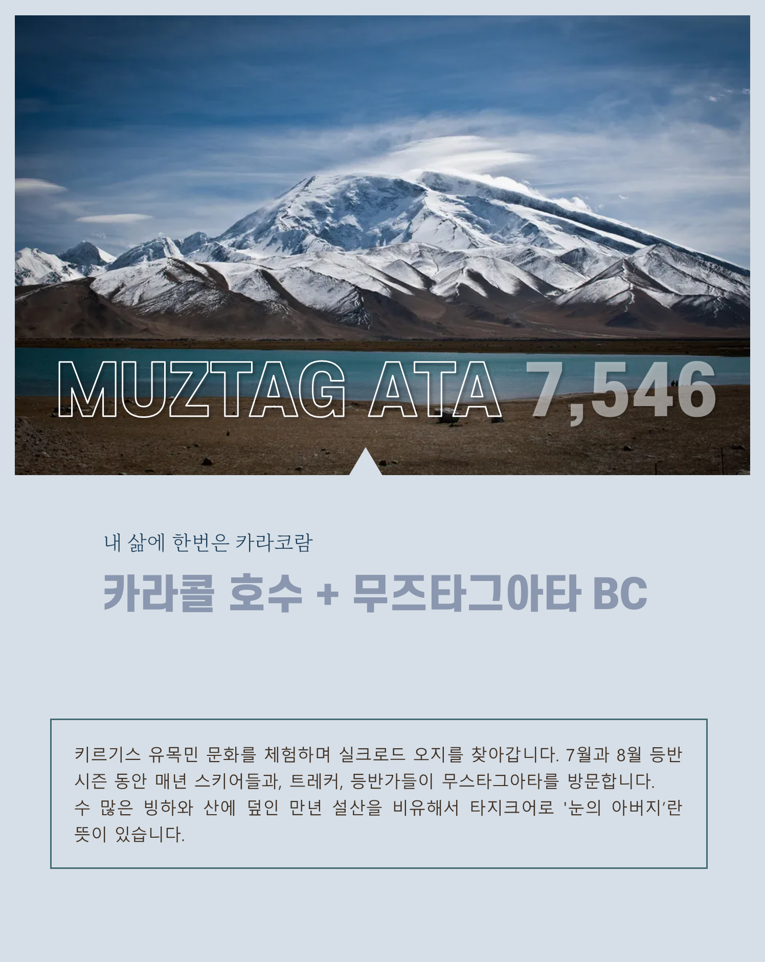 주제 : 카라콜 호수 + 무즈타그아타 BC