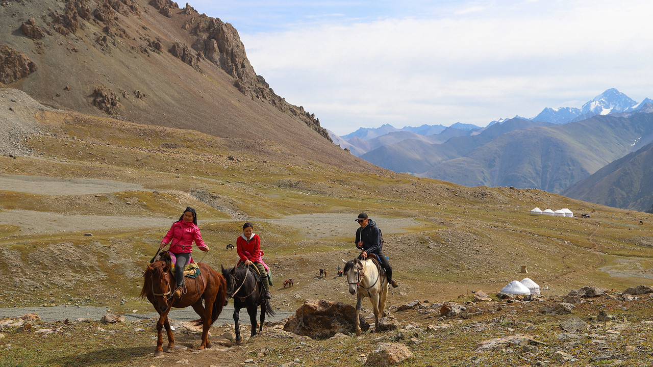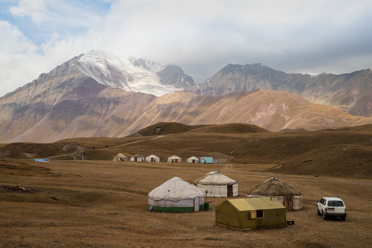 툴파쿨 고원, 레닌봉(7,134m)을 조망할 수 있는 유목민 마을 도착