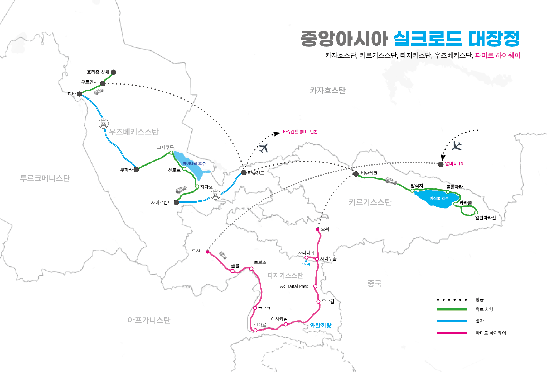 무르갑 - 카라쿨 호수(3.900m) - (국경) - 키질아트 패스(4,282m) - 툴파쿨 : 305km l 6 ~ 7시간